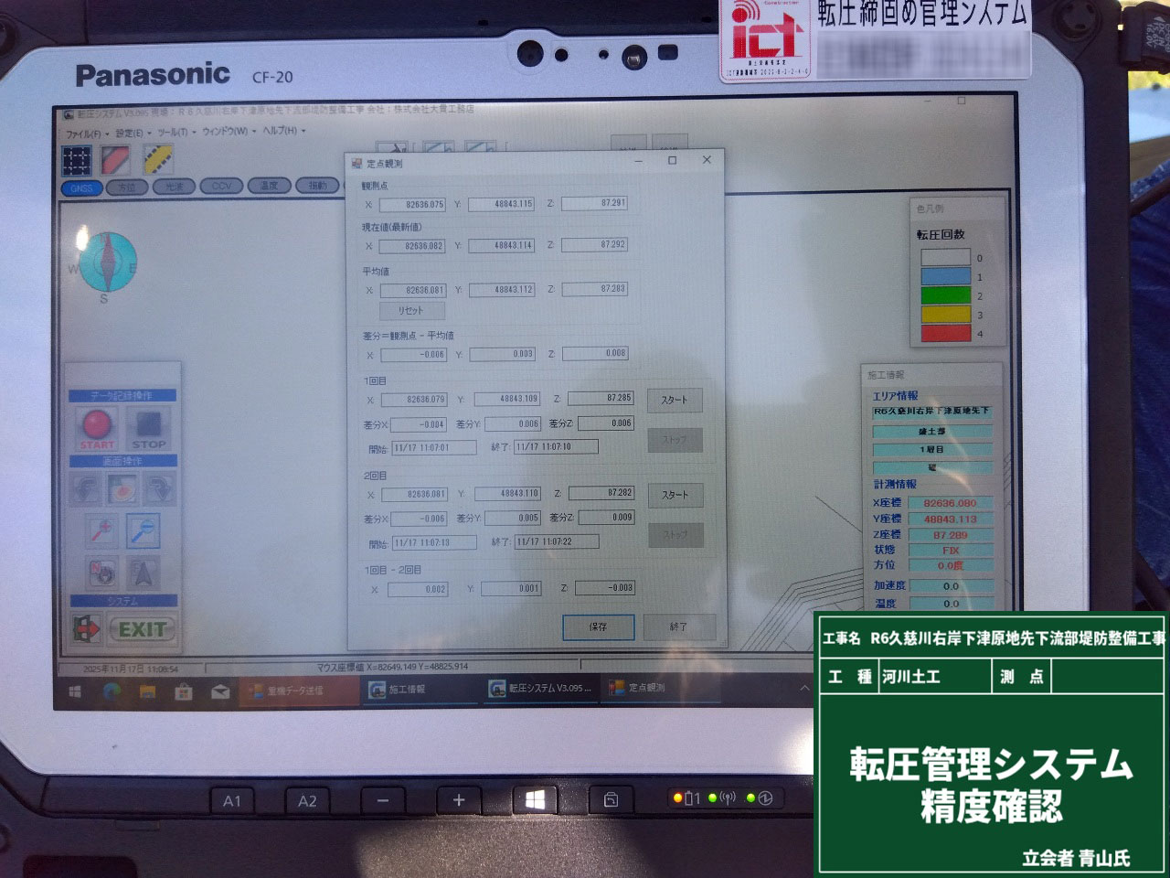 そして転圧回数が決まったら、次はICT建機の精度確認です。