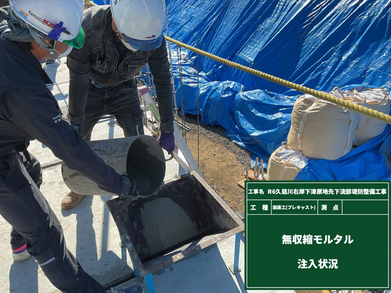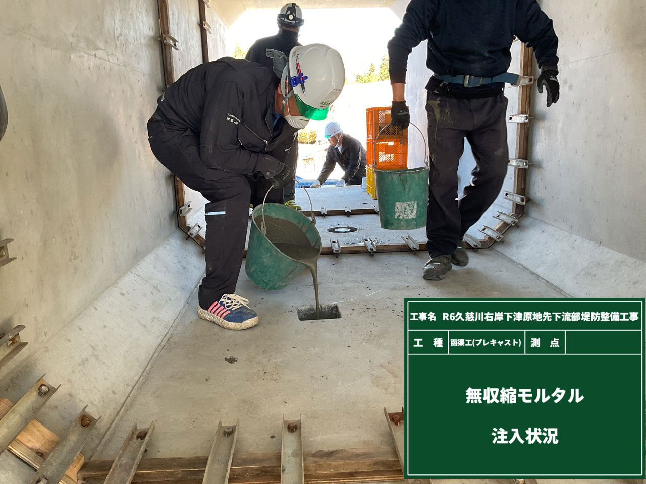 ボルト穴やボックスカルバートの隙間に、モルタルを”みっちり”と注入しています😊