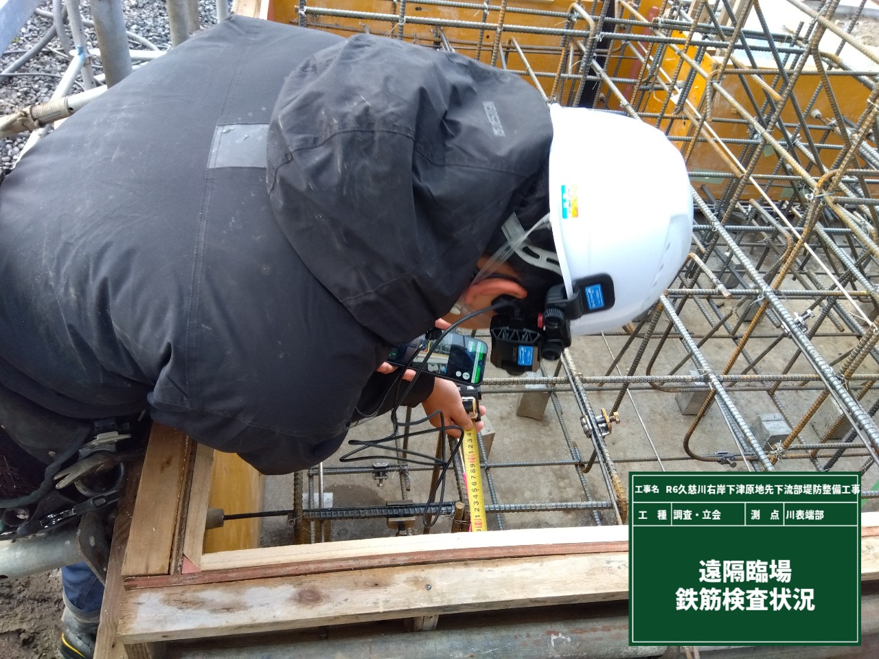 その前段階として鉄筋組立が完了したので、発注者の現場立会い+遠隔臨場で配筋検査を行いました。