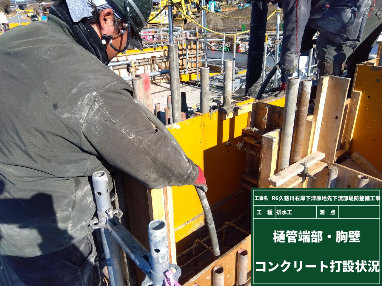 樋門のボックスカルバートの周りは、現場打ちによるコンクリート打設を予定しています。