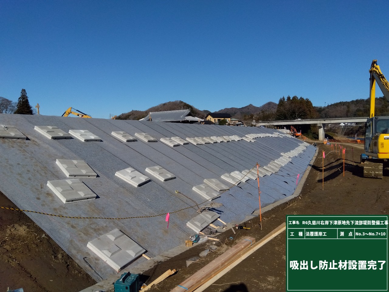 吸出し防止材は、ブロックの隙間から土砂が流れ出るのを防ぐ+土台の空洞化や陥没を防いで法面全体を支えてくれます👍