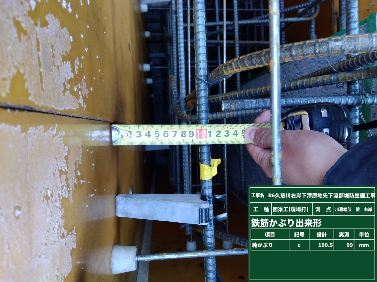川裏端部に続いて、樋管端部・胸壁の鉄筋検査を行いました。
