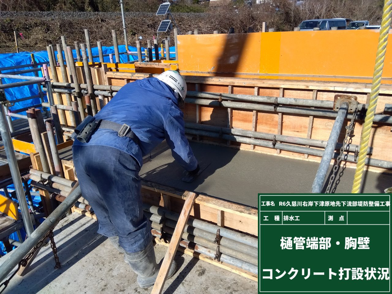 樋門のボックスカルバートの周りは、現場打ちによるコンクリート打設を予定しています。